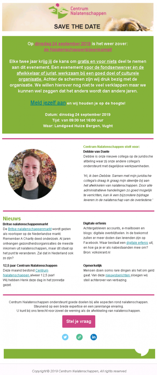 U ontvangt tweemaandelijks Het Nieuws Dossier waarin wij u op de hoogte houden over het laatste nieuws, weetjes en acties.